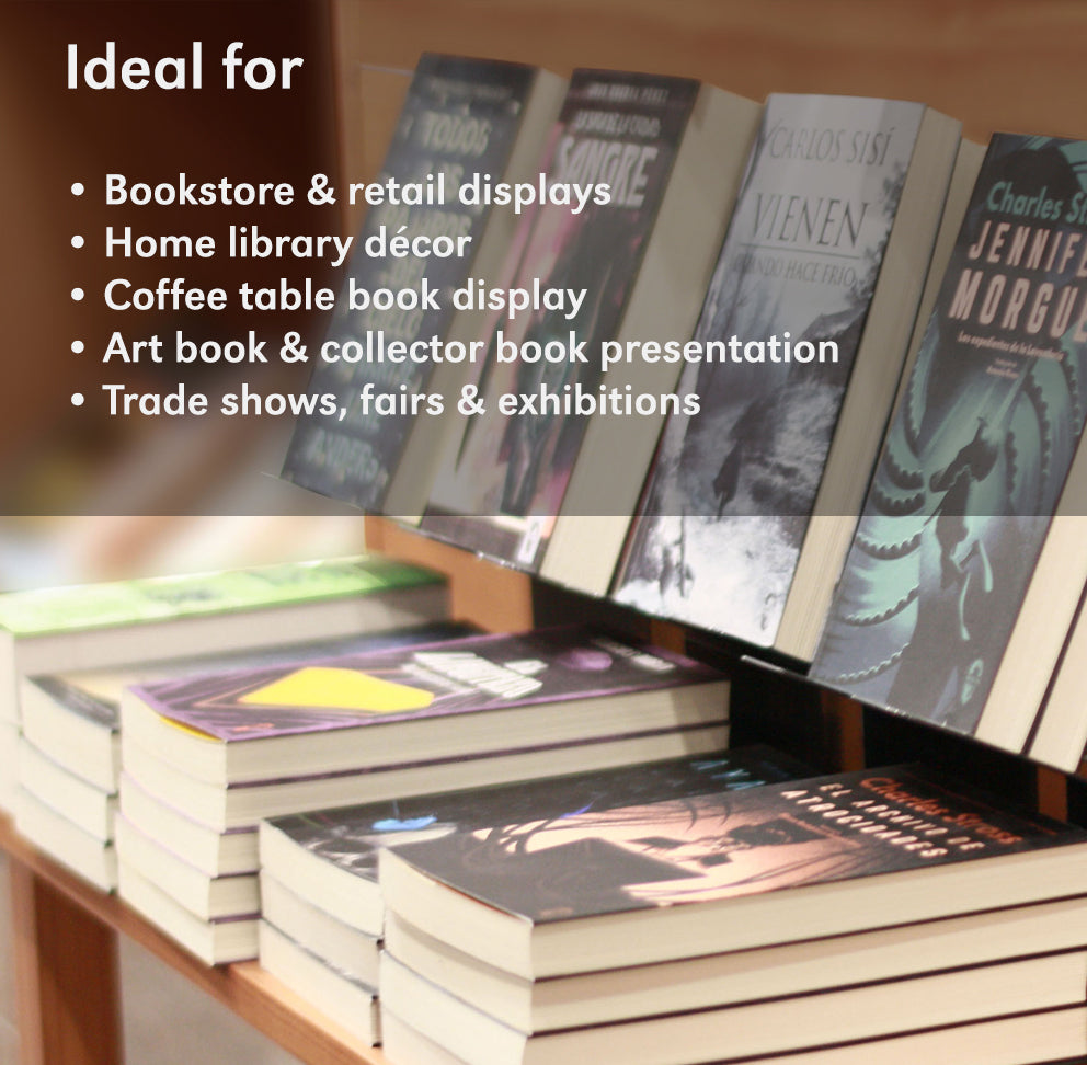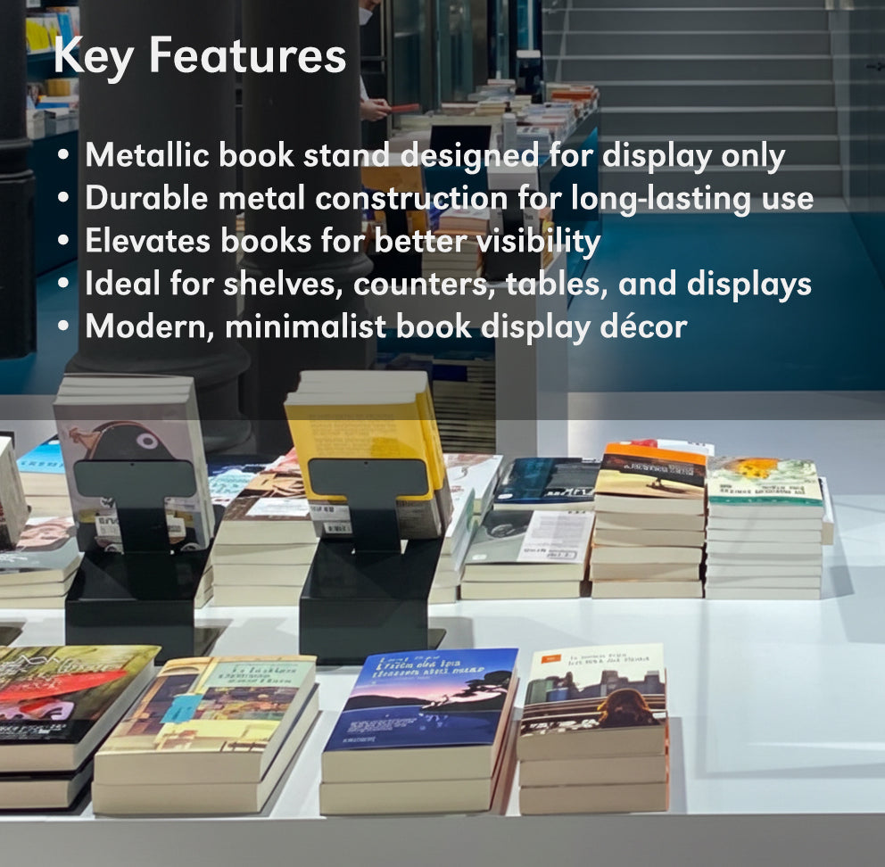 Rexi-25 est un présentoir métallique destiné uniquement à une utilisation sur table. Il est facile à utiliser et très stable. Il permet d'exposer et d'organiser des piles de livres et peut facilement créer des espaces pop-up. Ce présentoir met en valeur les livres et les fait ressortir. Il peut facilement se fondre parmi les livres exposés.